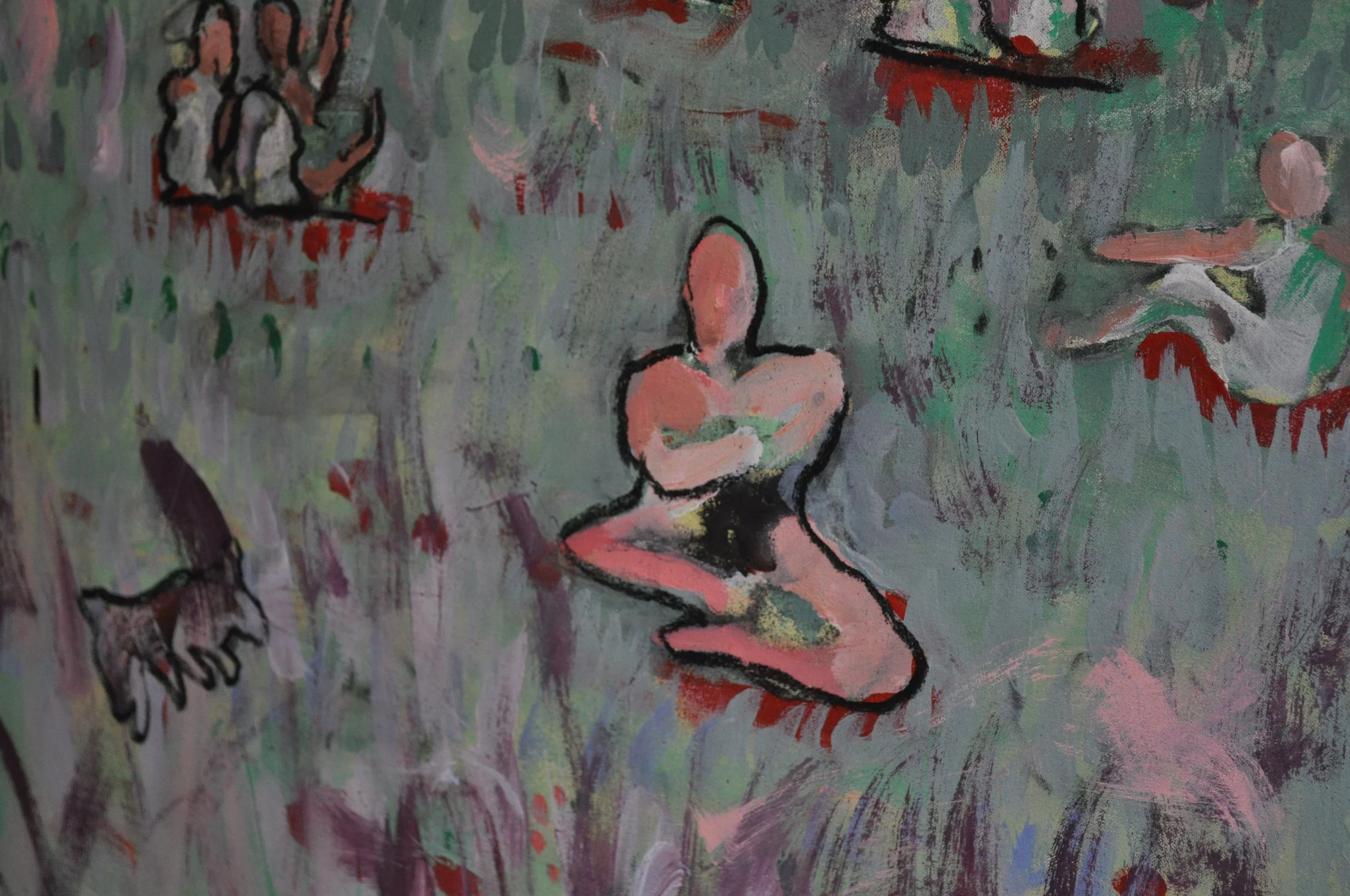 I didn’t know what my experience with the other, a park, would be. At first, it was a charged space for me. One of the things that attracted me to the area in the first place. After I moved, I didn’t know anybody but, because I was out there so much, it sort of got me acquainted with the city. Later I took it for granted, using it to workout, sit, and walk strictly functional. Summer changed it, so did winter. Then, I painted it to rediscover my full range of experiences out there, and change the pace of viewing it, yet again.
